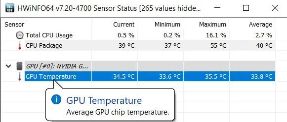 HWinfo ist ein starkes Tool zum Tracking von Hardware-Infos und Temperaturen. GPU-Temperaturen zu monitoren ist damit einfach: